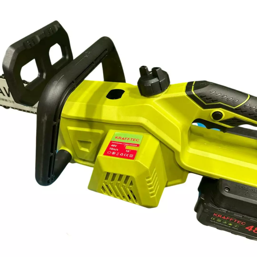 Акумуляторна ланцюгова пила Krafftec 16" (40 см) 48V, потужний безщітковий двигун, 2 акумулятори в комплекті