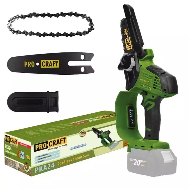 Акумуляторна ланцюгова міні пила ProCraft PKA-24 — безщітковий двигун, компактна шина 4|, плавний пуск, без АКБ і ЗП