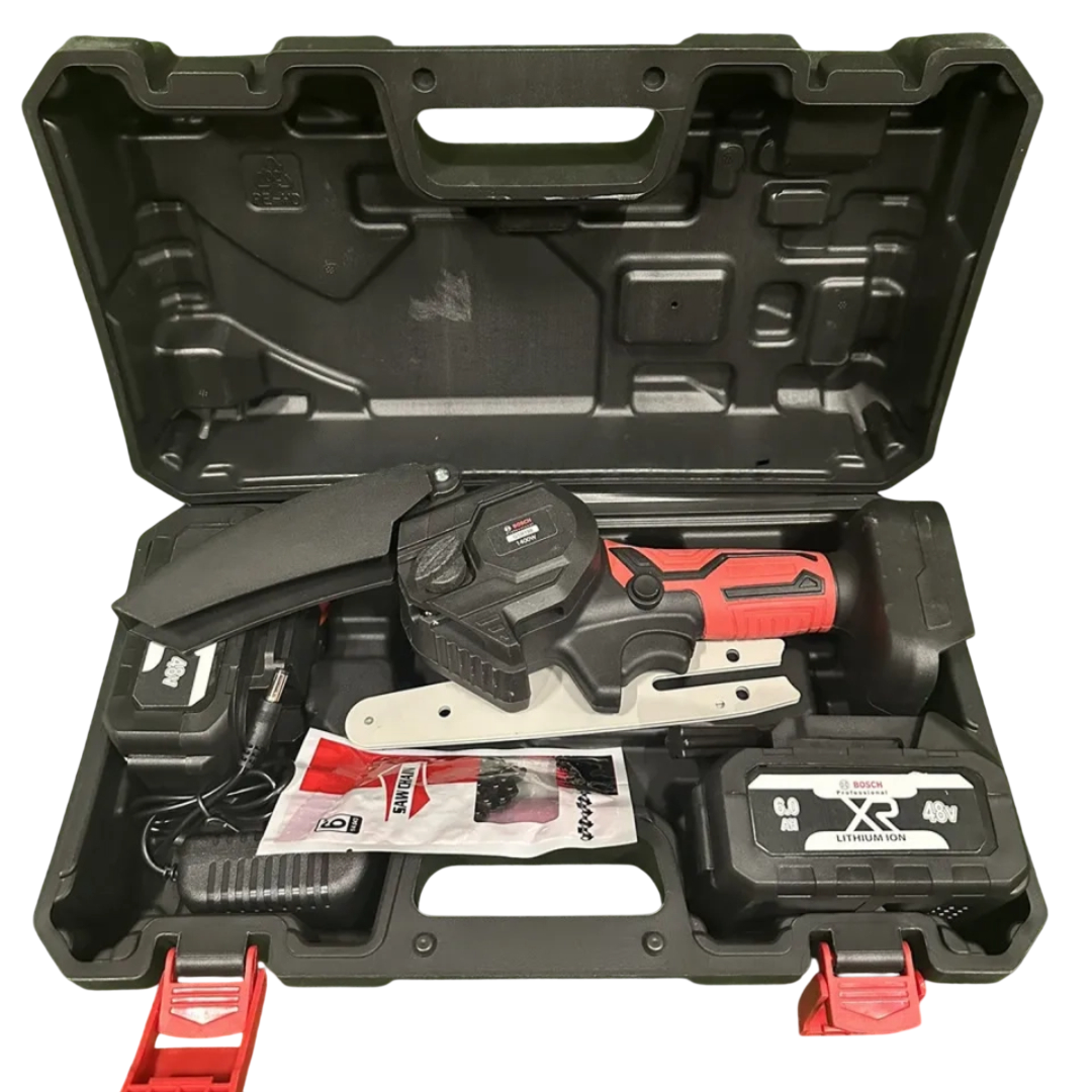 Ця акумуляторна мініпила Bosch GSR190W — сучасний автономний інструмент для оброблення деревини, догляду за садом і підготовки дров без дротів і бензину. Завдяки двом Liion акумуляторам 48 В/6 А·год пила працює тривалий час навіть за інтенсивного навантаження й не вимагає частого підзаряджання.