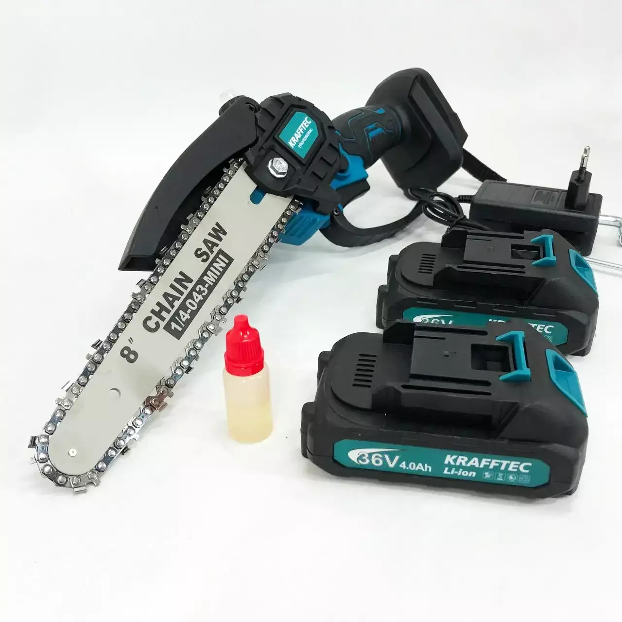 Акумуляторна ланцюгова міні пила Krafftec 36V/4Ah потужна та компактна для саду та дому