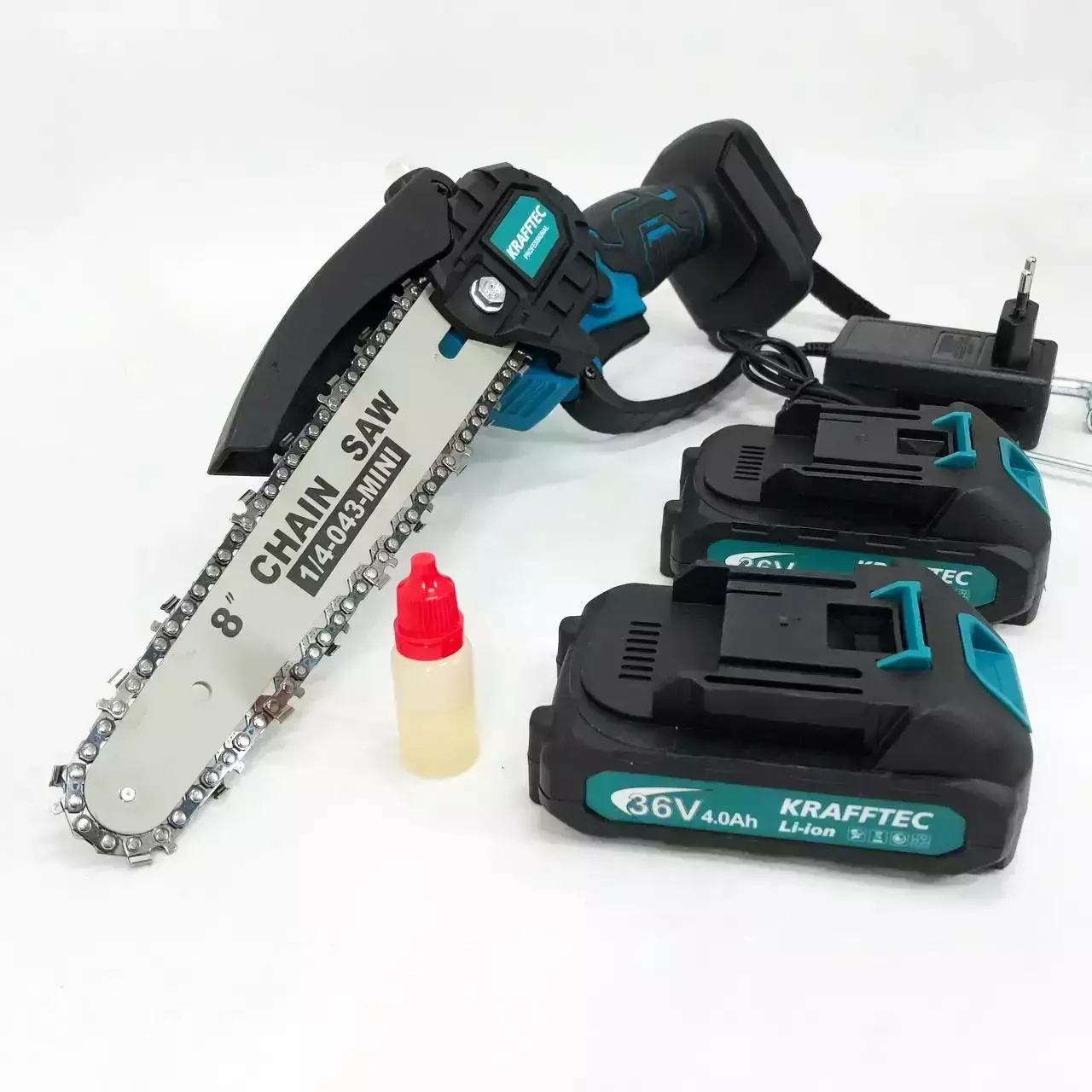 Акумуляторна мініпила Krafftec 36V/4Ah, 1200 Вт, АКБ — 2 шт., шина 20 см