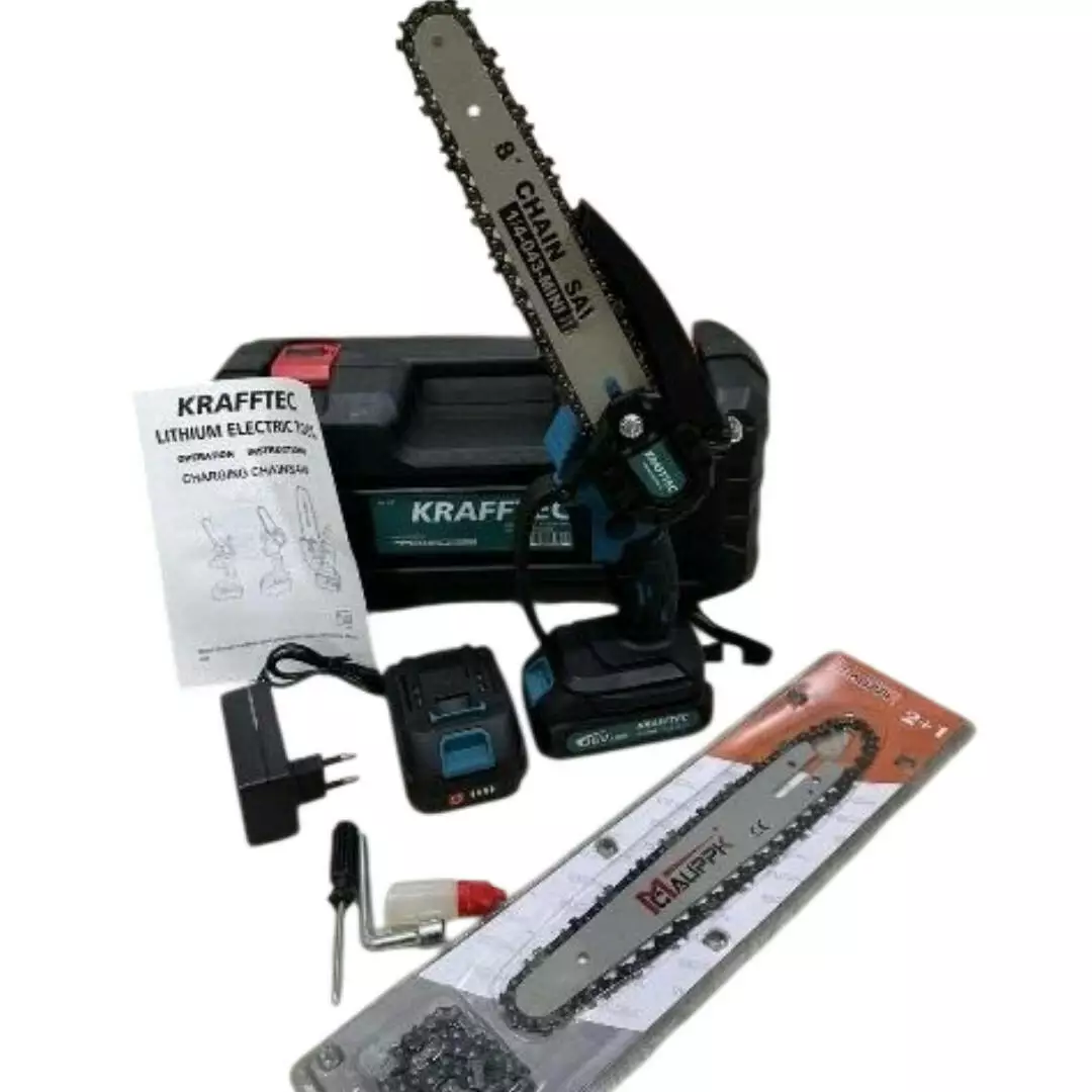 Акумуляторна пила Krafftec 36V/4Ah, 2 шини/3 ланцюги, 1200 Вт, 2 акумулятори