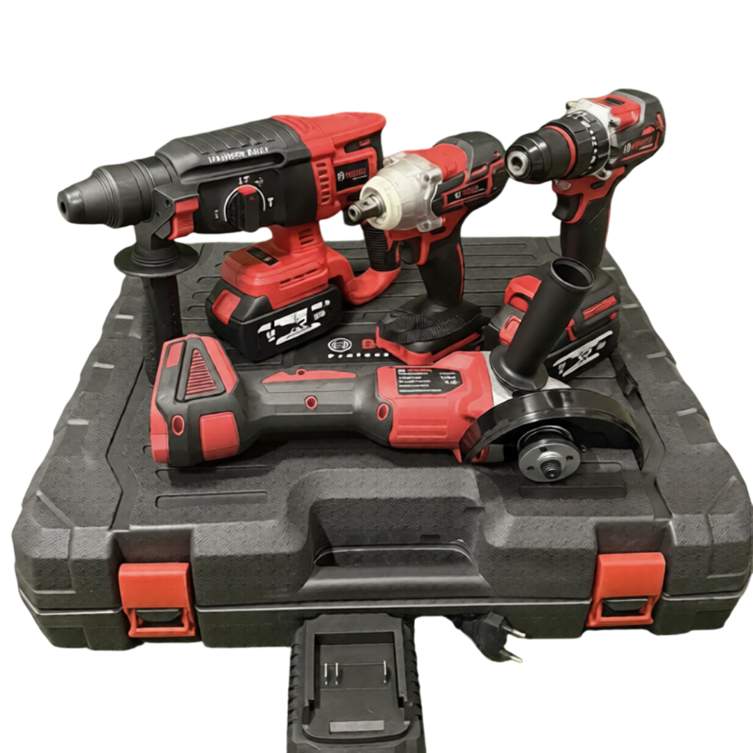 ✅ 4 інструменти в одному наборі — шурупокрут, гайковерт, перфоратор і болгарка.