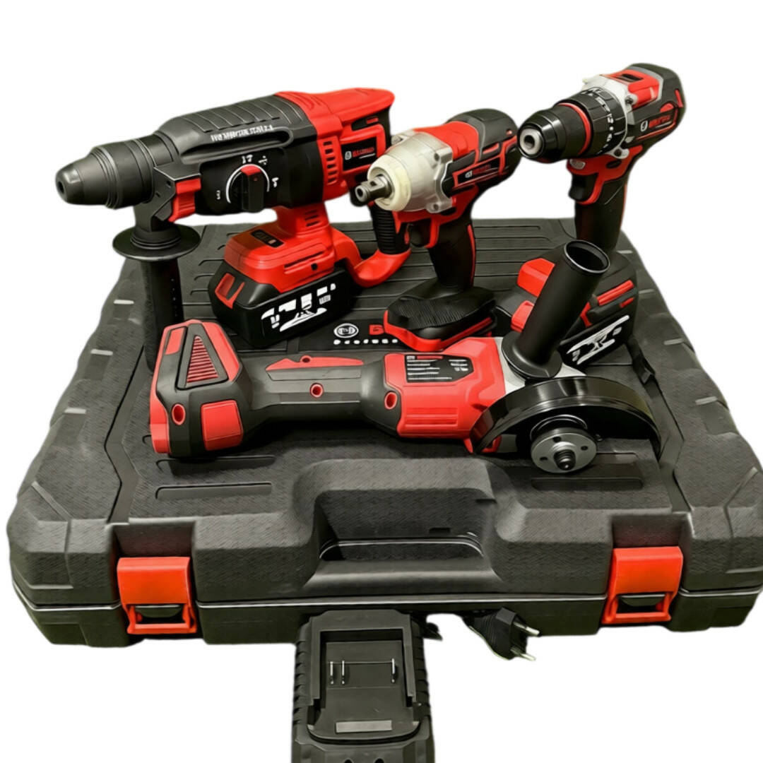 Завдяки продуманій конструкції та високій потужності, набір легко справляється з металом, бетоном, цеглою та деревом. Перфоратор з ударним механізмом і системою SDS-Plus підходить для роботи з твердими матеріалами, гайковерт забезпечує високий крутний момент для складного кріплення, а болгарка з диском 125 мм ідеально підходить для різання та шліфування. Шурупокрут із регулюванням швидкості дає змогу виконувати точні роботи. Такі комплекти широко використовуються для ремонту та будівництва завдяки своїй універсальності та мобільності.