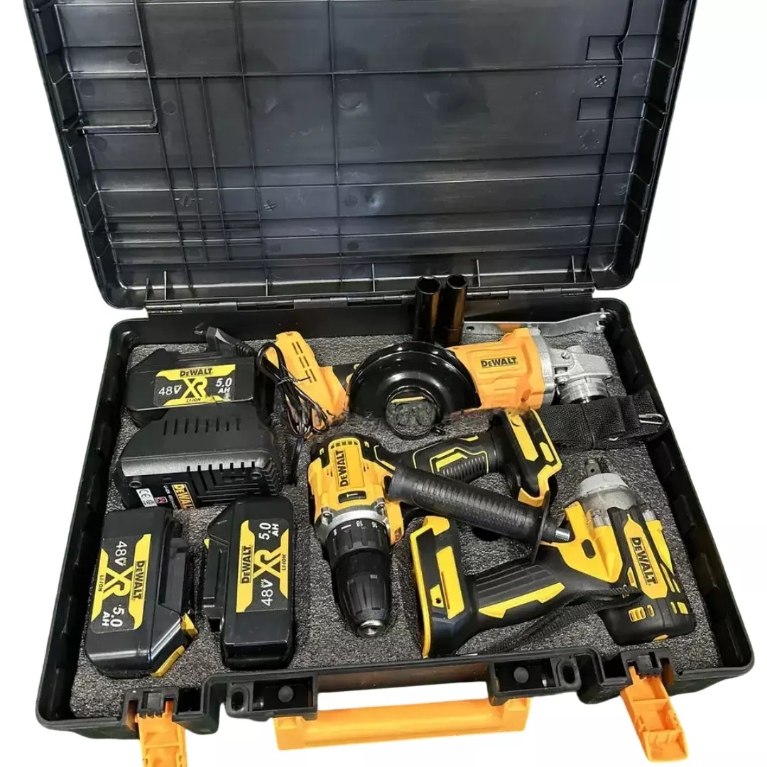 Акумуляторний набір інструментів 3в1 DeWalt 48 V (шурупокрут DCD771 + болгарка DCG405 + гайковерт DCF892P2T) — потужний комплект для будівництва, ремонту й автосервісу