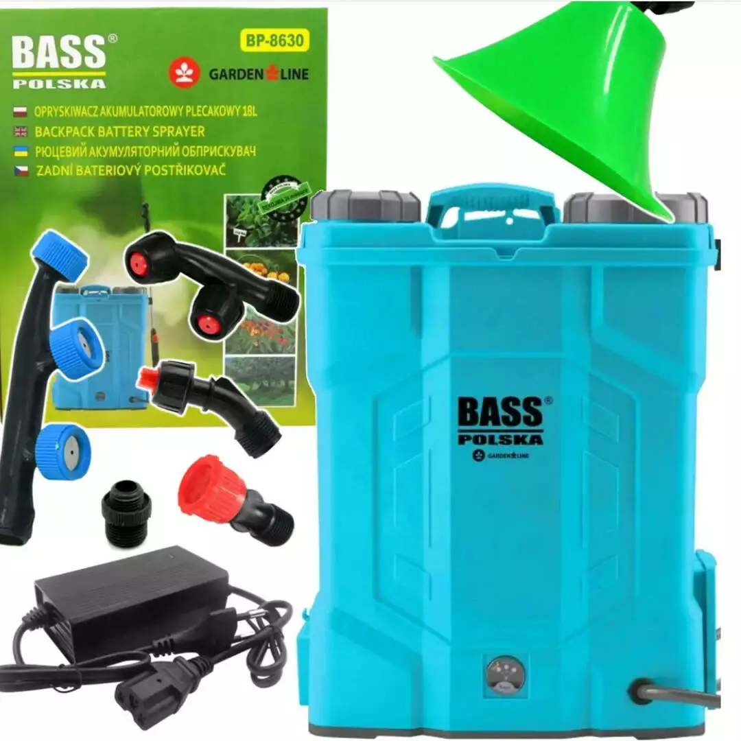 Акумуляторний обприскувач 18 л Bass Polska 8630 — це високоефективне рішення для догляду за рослинами в саду, городі, парниках, теплицях і на великих ділянках. Він призначений для точного та рівномірного розпилення захисних рідин, добрив, інсектицидів і гербіцидів, що робить його незамінним інструментом як для дачників, так і для професійних аграріїв. Надійна акумуляторна система забезпечує автономну роботу без ручного накачування тиску, а об'єм бака 18 літрів дає змогу обробляти великі площі без частих перерв на дозаправлення.