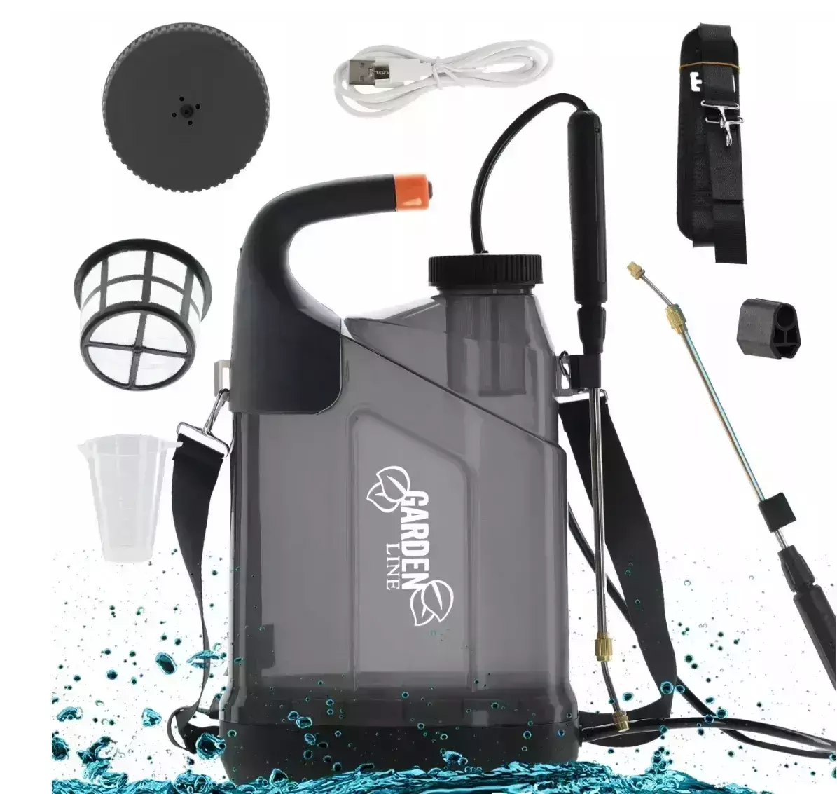Акумуляторний обприскувач плечовий GardenLine AOK0436, на 7 л, АКБ 2500 mAh/5V, шланг 125 см