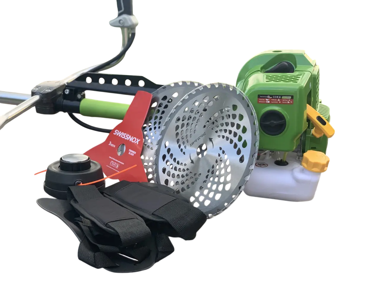 Мотокоса вирізняється універсальністю застосування і гарною комплектацією. Залежно від встановленого різального елемента інструмент можна використовувати як тример для газонної трави, косу для густих бур'янів або кущоріз для молодої порослі. Максимальна ширина скошування досягає до 415 мм, що дає змогу швидше обробляти великі ділянки. Посилена поршнева група та хромований циліндр підвищують ресурс двигуна та стійкість до зношування. Великий паливний бак обсягом приблизно 1,2 літра забезпечує тривалу роботу без частих зупинок на заправку. Напівавтоматична котушка полегшує подавання волосіні під час роботи. Ранцевий ремінь рівномірно розподіляє навантаження на плечі та спину підвищуючи комфорт оператора. Завдяки поєднанню потужності, надійності та зручності GTR 52 стає універсальним помічником для догляду за будь-якою територією.