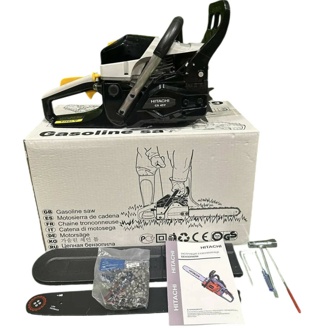 Бензопила Hitachi CS-45-Y, шина 45 см, потужний двигун 4,2 кВт (5,7к. с.), легкий запуск із праймером