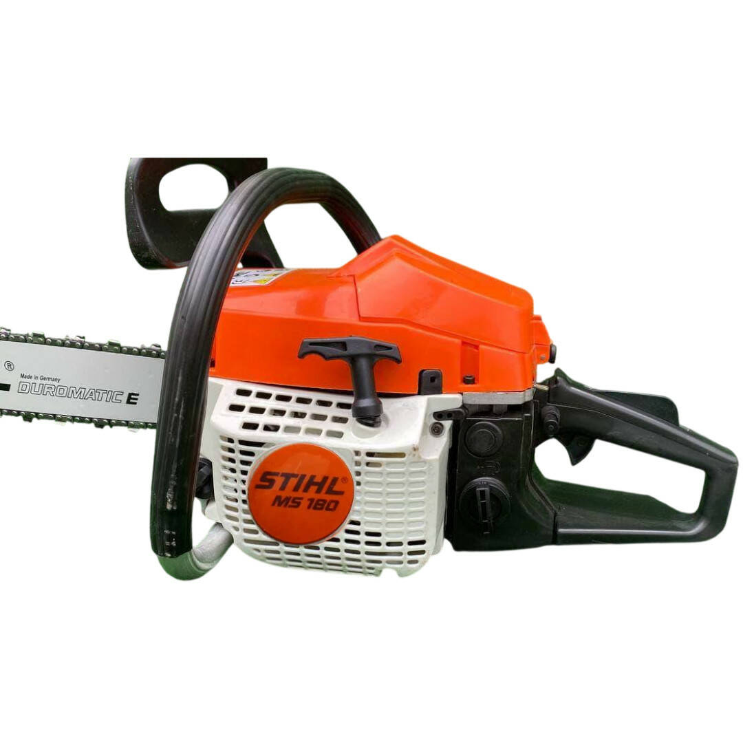 Бензопила STIHL MS 180 — одна з найпопулярніших моделей серед побутових бензопил завдяки вдалому поєднанню потужності, невеликої ваги та високої надійності. Інструмент оснащений двотактним бензиновим двигуном об'ємом приблизно 31,8 см3, який забезпечує потужність приблизно 1,5 кВт (2.0 к. с.) і стабільну роботу під час розпилювання деревини різної щільності. Пила чудово підходить для обрізання дерев, розпилювання дров, догляду за садом і будівельних робіт. Завдяки компактним розмірам і зручній конструкції вона добре підходить як для домашніх майстрів, так і для регулярного використання на дачі. Рекомендована довжина напрямної шини становить 35 см , що дає змогу ефективно працювати з гілками, дошками та невеликими колодами. Покращена система охолодження двигуна та фільтрації повітря допомагає підтримувати стабільну продуктивність навіть у разі тривалої роботи. Вага пили біля 4,1 кг, тому інструмент залишається зручним і легким.