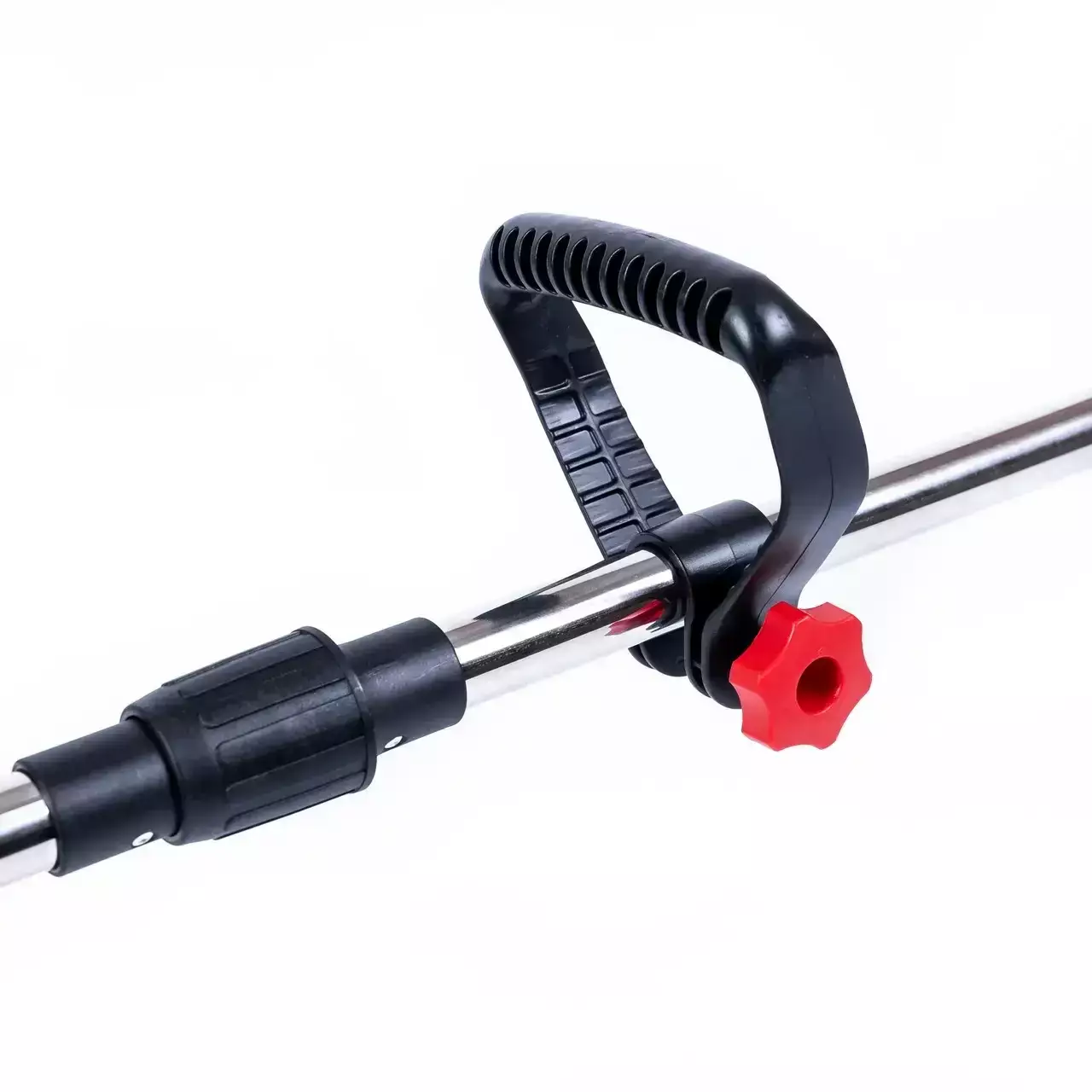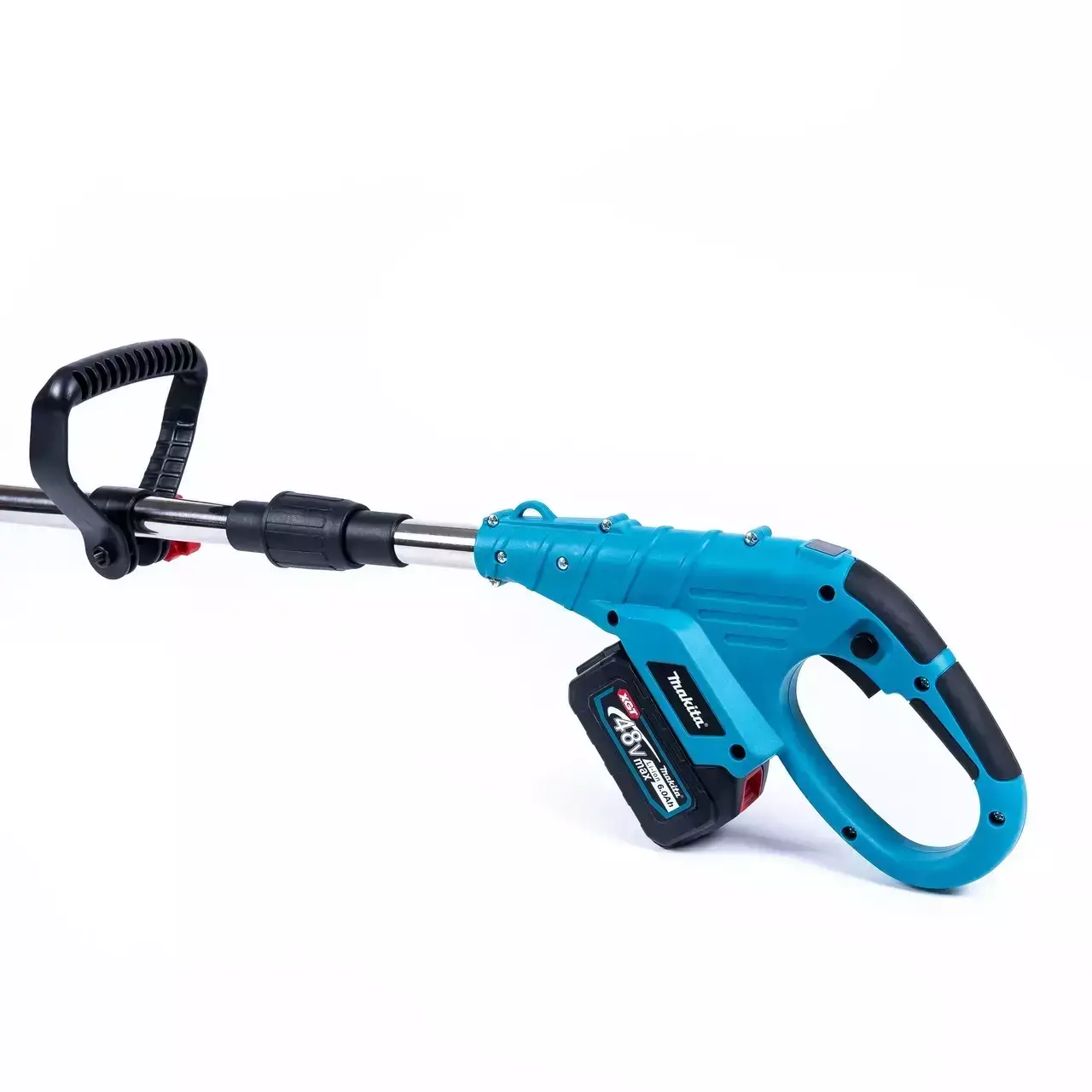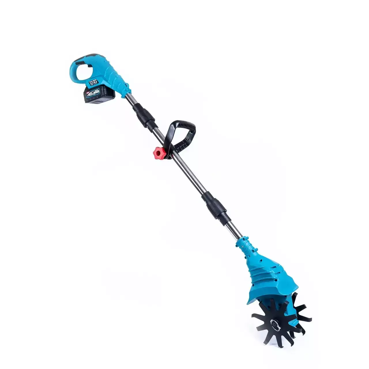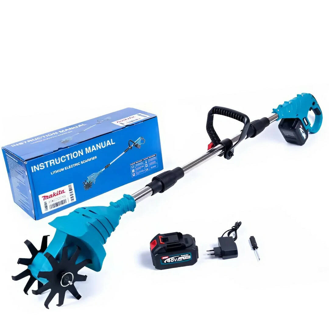 Продумана конструкція робить інструмент максимально зручним для користувача. Культиватор має регульовану ручку завдовжки приблизно 120 см, що дає змогу налаштувати інструмент під зріст користувача та зменшити навантаження на спину. Вага пристрою становить приблизно 6,3 кг, тому ним легко керувати навіть на вузьких грядках або в теплиці. До комплекту входять два акумулятори 48V 6Ah, що забезпечують автономну роботу без постійного підзаряджання.