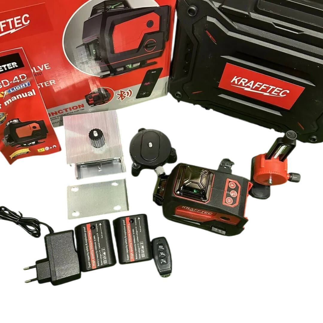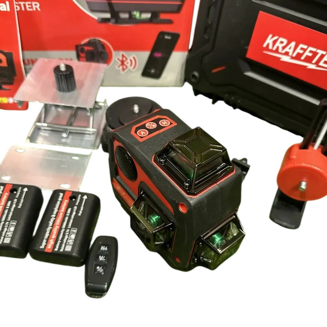 Професійний лазерний рівень Krafftec LL516G 4D 16 ліній — зелений промінь, Bluetooth, пульт ДК, максимальна точність 360°