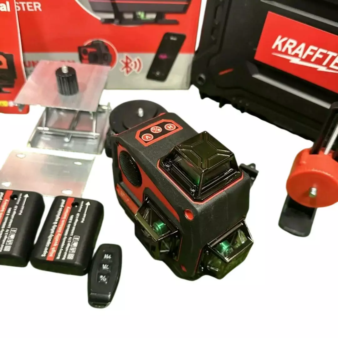 Оцініть точність нового рівня з професійним лазерним нівеліром Krafftec LL516G, який забезпечує повний контроль розмітки в будь-яких умовах. Пристрій проєктує 16 лазерних ліній (4 площини 360°) — дві горизонтальні та дві вертикальні, що дає змогу одночасно працювати в усіх напрямках без перестанови приладу. Зелений лазер набагато яскравіший від червоного та чудово видно навіть за денного освітлення, що робить інструмент ідеальним як для внутрішніх, так і для зовнішніх робіт.