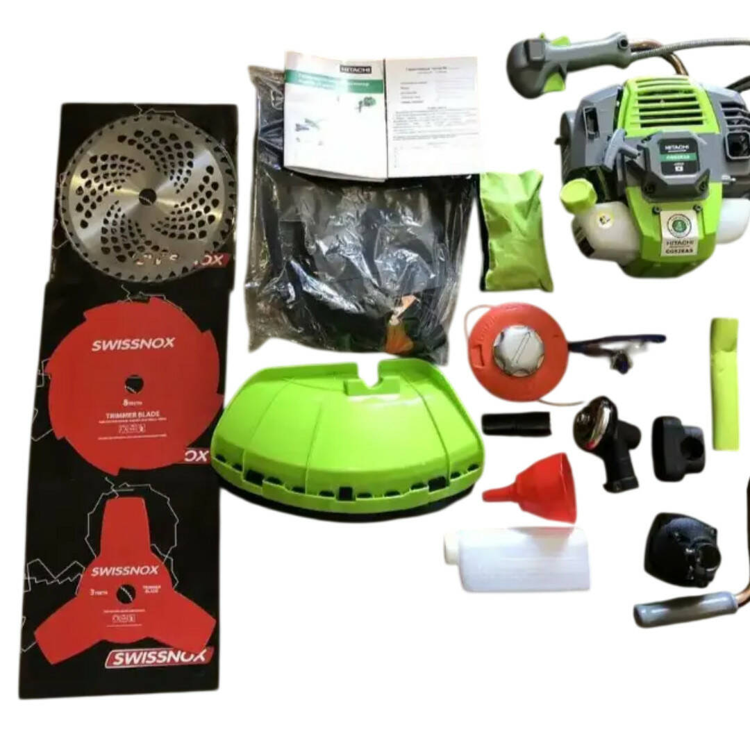 Модель вирізняється універсальністю й може працювати з декількома типами різального інструменту. До комплекту входять котушка з волосінню для м'якої трави, металевий ніж і пиляльний диск для жорсткої рослинності. Максимальна швидкість обертання досягає 8000 об./хв, що забезпечує ефективне косіння навіть на зарослих ділянках. Ширина скошування волосінню може досягати 415 мм, даючи змогу швидко обробляти великі площі. Антивібраційна система знижує навантаження на руки та робить роботу комфортнішою. Місткий паливний бак 1.2 л забезпечує тривалу роботу без частих зупинок на дозаправляння. Завдяки надійній конструкції та високій потужності мотокоса HITACHI CG52EAS є популярним вибором для дачі, фермерських господарств і комунальних робіт.