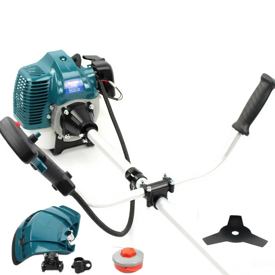 Інструмент оснащений велосипедною (U-подібною) ручкою, яка забезпечує зручне керування й рівномірний розподіл навантаження на руки та плечі. Модель підтримує використання волосіні для коса м'якої трави та металевого ножа для жорсткої рослинності, що робить її універсальним рішенням для різних завдань на ділянці. Ширина скошування волосінню досягає 415 мм, завдяки чому можна швидко обробляти великі території. Антивібраційна система знижує навантаження на руки та робить тривалу роботу комфортнішою. Посилений редуктор і міцний приводний вал збільшують термін експлуатації інструмента та підвищують надійність конструкції. Паливний бак об'ємом приблизно 1.2 л забезпечує тривалу роботу без частих зупинок на дозаправляння. Надійний запуск і проста конструкція роблять цю мотокосу зручною навіть для користувачів без великого досвіду.