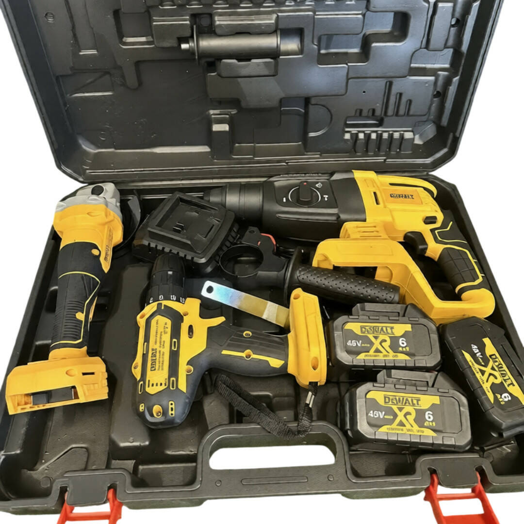 Багатофункціональний акумуляторний набір інструментів 3 в 1 — це універсальний комплект для будівельних, монтажних і ремонтних робіт. До набору входять шурупокрут DCD996, кутова шліфмашина DCG409 і перфоратор DCH133NT, завдяки чому користувач отримує повний комплект обладнання для більшості завдань. Такий набір чудово підійде для свердління, монтажу кріплення, різання металу, демонтажних робіт і буріння бетону. Акумуляторне живлення забезпечує повну мобільність, даючи змогу працювати на будівництві, у гаражі, на дачі або в місцях без доступу до електромережі.