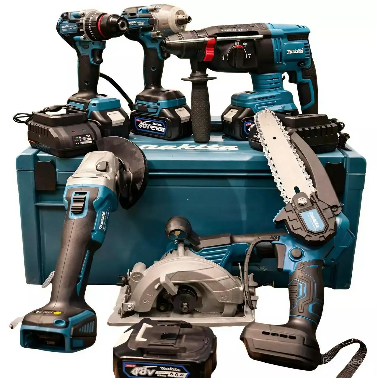 Набір акумуляторних інструментів 6в1 Makita 48 V — повний комплект для будівництва, ремонту та саду: шурупокрут, гайковерт, болгарка, перфоратор, міні пила, циркулярна пила