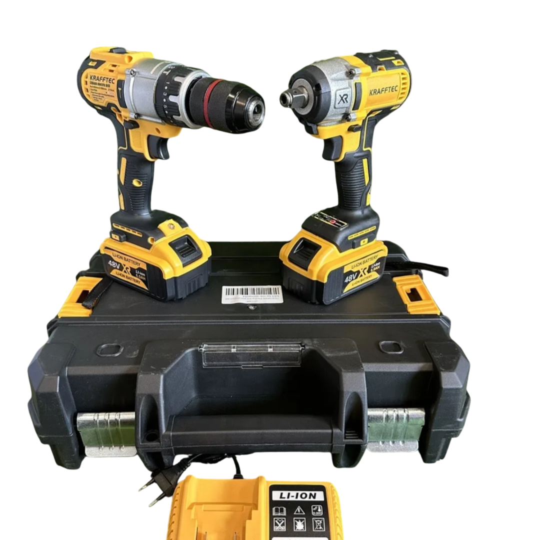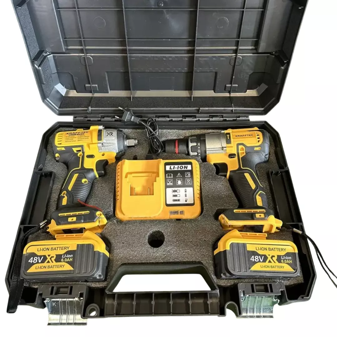 Акумуляторний набір інструментів Krafftec XR 48 V (шурупокрут + ударний гайковерт) з 2 акумуляторами та кейсом — потужний професійний комплект