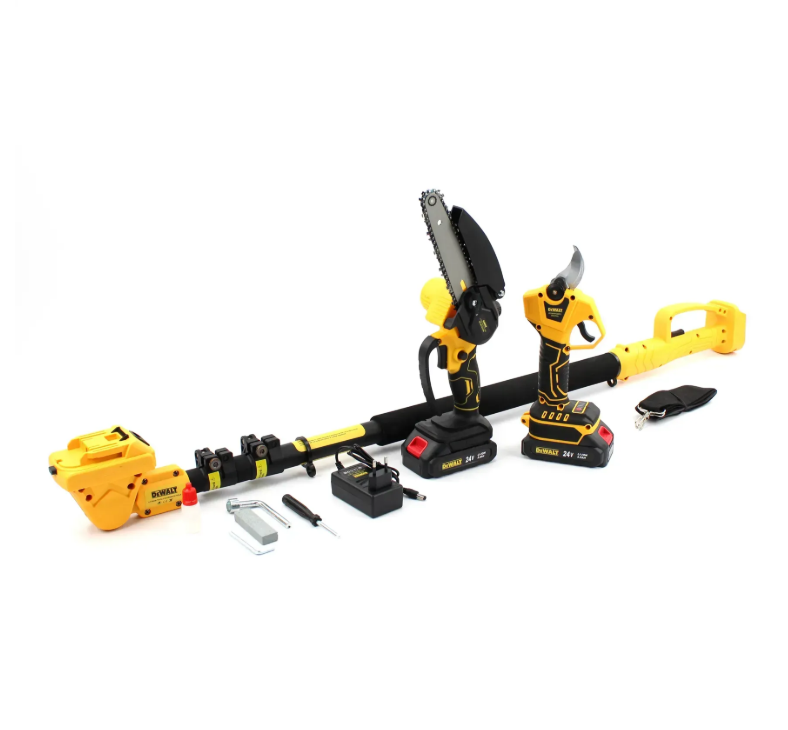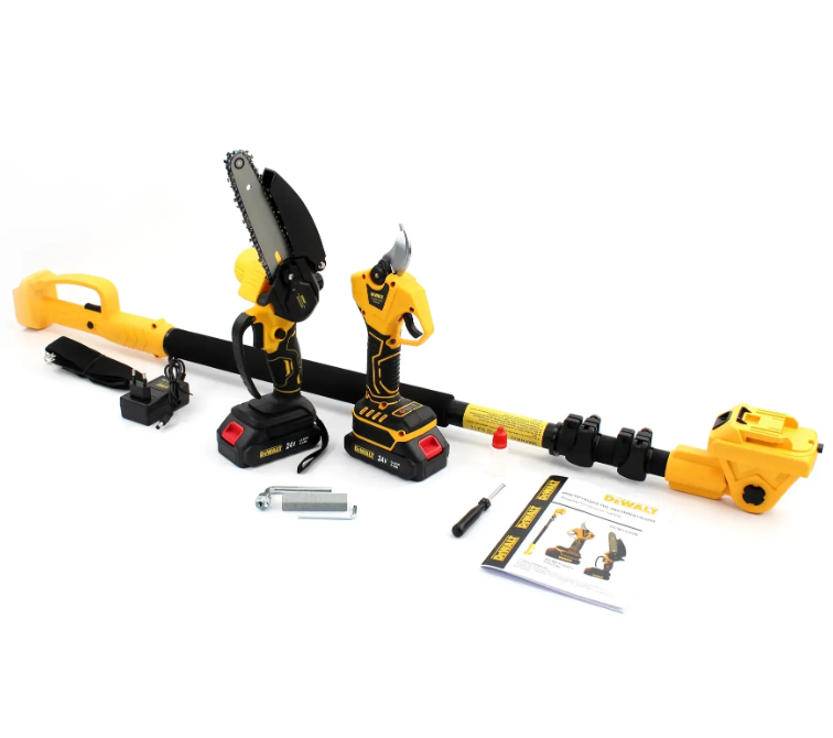 Набір акумуляторний 3в1 DeWalt 24V (Міні-пила / Секатор / Телескопічна штанга 2.6 м) Шина 15 см Різ 30 мм 2 АКБ