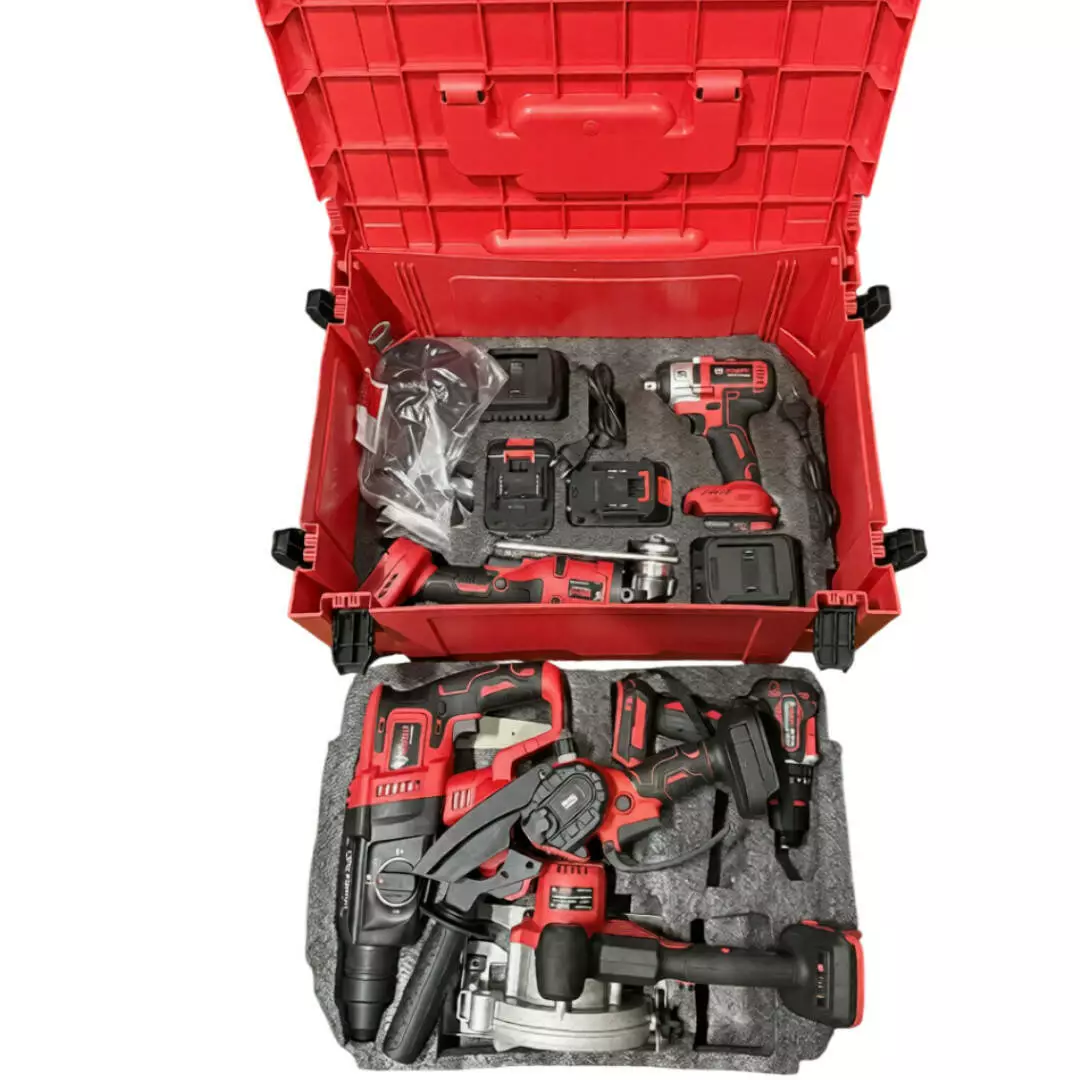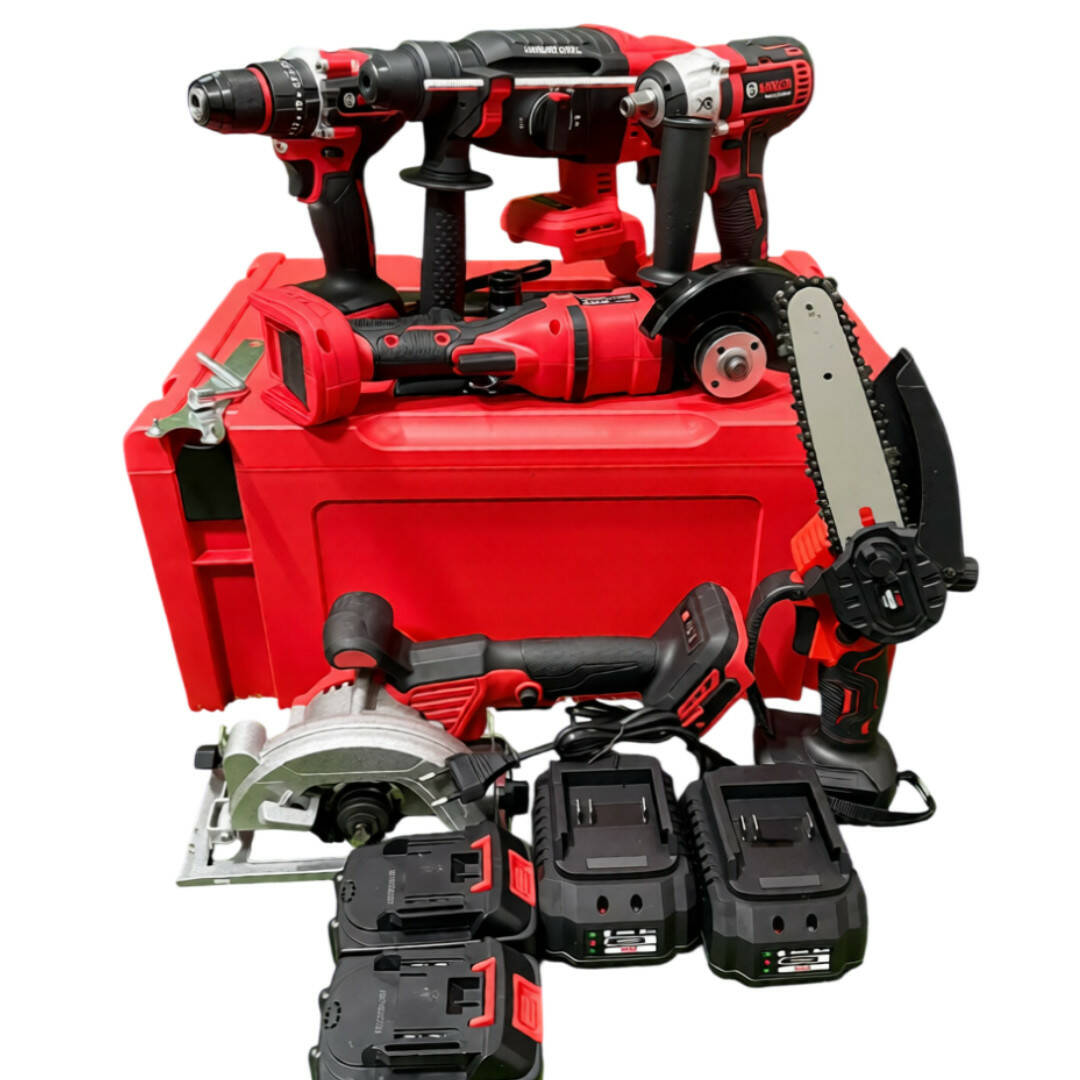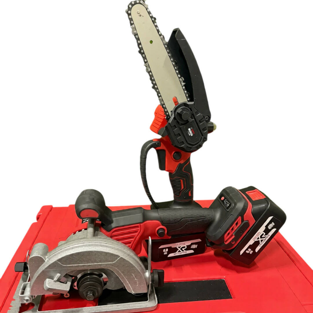 Цей багатофункціональний набір інструментів 6 в 1 стане надійним помічником у будинку, майстерні, гаражі або на дачній ділянці. До комплекту входять шурупокрут, гілкоріз, болгарка, перфоратор, гайковерт і циркулярна пила, які працюють від потужного акумулятора 48 V, забезпечуючи довгу роботу без підзаряджання та високу продуктивність за будь-яких завдань.