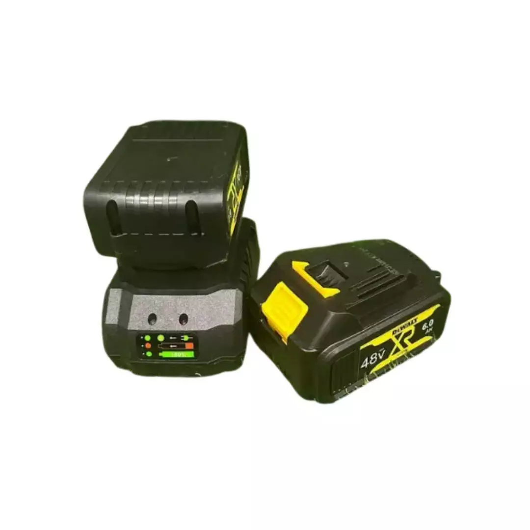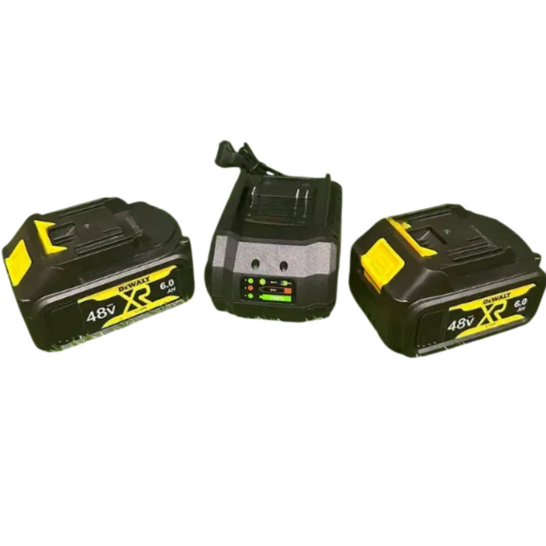 Зарядний пристрій підтримує швидке й безпечне заряджання акумуляторів, а світлодіодна індикація показує процес заряджання та готовність батареї до роботи. Завдяки сумісності з акумуляторними інструментами DeWALT 48V, комплект стане чудовим доповненням до вашого інструментального арсеналу та дасть змогу працювати без простоїв.