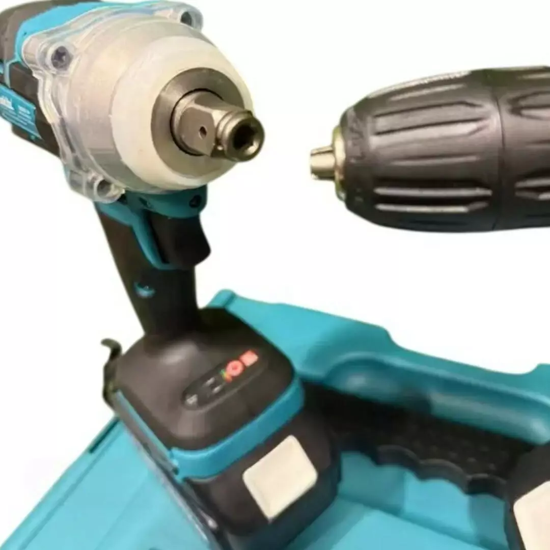 Ударний шурупокрут Makita DWT485 обладнаний двошвидкісним редуктором і регулюванням крутного моменту, що дає змогу точно підібрати режим роботи для різних матеріалів і типів кріплення. Він чудово підходить для свердління, закручування саморізів, монтажу гіпсокартону та збирання меблів. Ударний гайковерт Makita DWT351 призначений для роботи з кріпленням великого діаметра та широко використовується в автосервісах, гаражах і на будівельних майданчиках. Завдяки ударному механізму інструмент легко справляється навіть із прикипілими болтами. Компактні розміри дають змогу працювати в обмеженому просторі, а збалансована вага знижує навантаження на руки. Набір постачається в міцному кейсі, який забезпечує зручне зберігання і транспортування інструмента. Такий комплект стане чудовим вибором як для професійних майстрів, так і для домашнього використання.