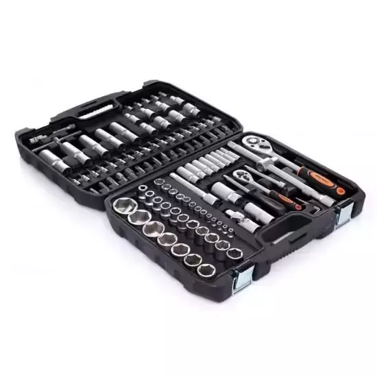 Професійний набір ручного інструменту Kraft & Dele KD10835 (101 штук) — це універсальний і повністю укомплектований комплект інструментів, який стане надійним помічником у будинку, гаражі, майстерні або під час ремонту автомобіля. Усі інструменти виготовлені з міцної хромо-ванадієвої сталі (Cr-V), що забезпечує їм високу міцність, стійкість до корозії та зношування, а також довгий термін експлуатації навіть за регулярної експлуатації. Весь комплект зручно зберігається в зручному пластиковому кейсі з позначеними місцями для кожного предмета, що допомагає підтримувати лад і швидко знаходити потрібний інструмент.