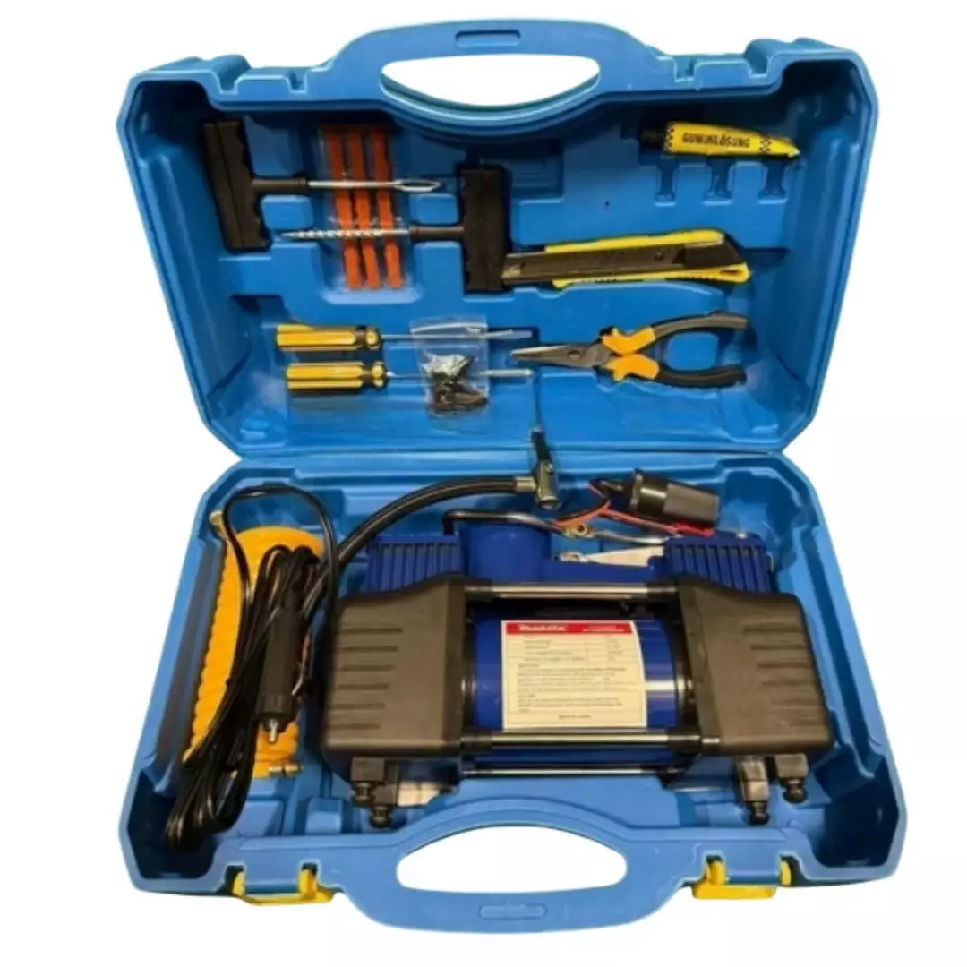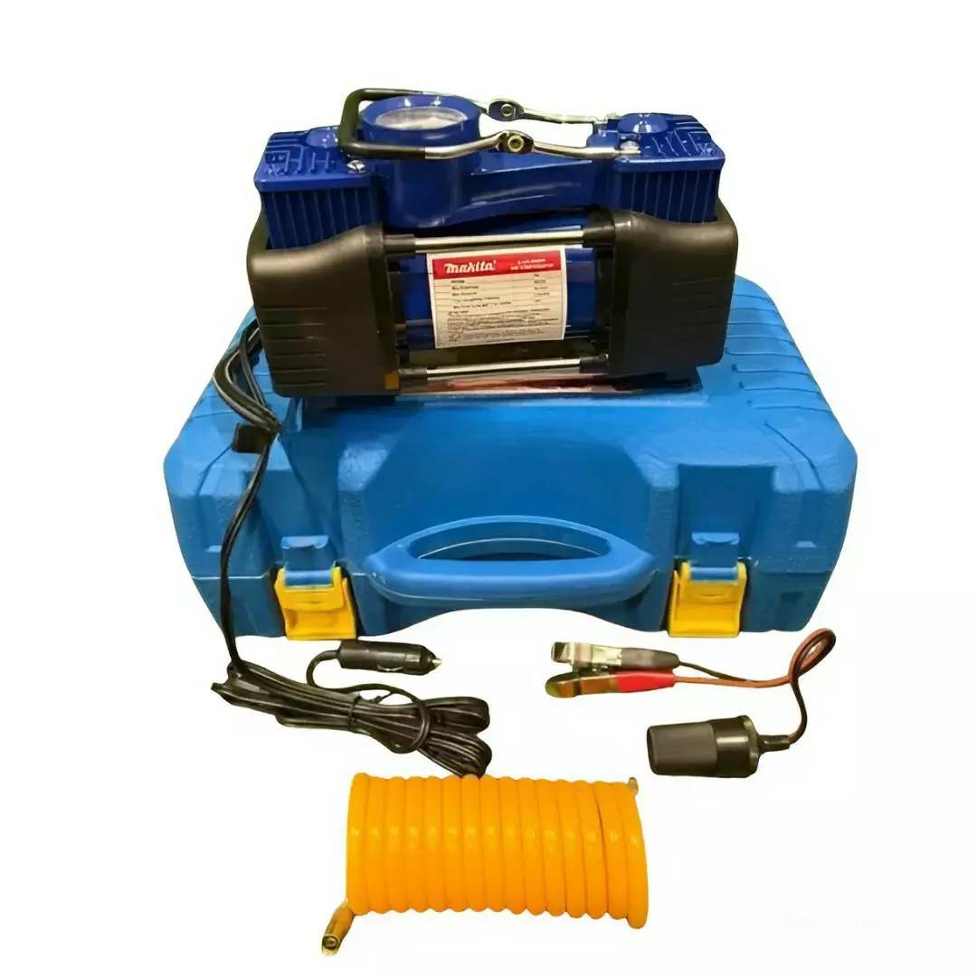 Повітряний автомобільний компресор двопоршневий Makita 72 л/хв 12 V, тиск 10 АТМ + набір інструментів