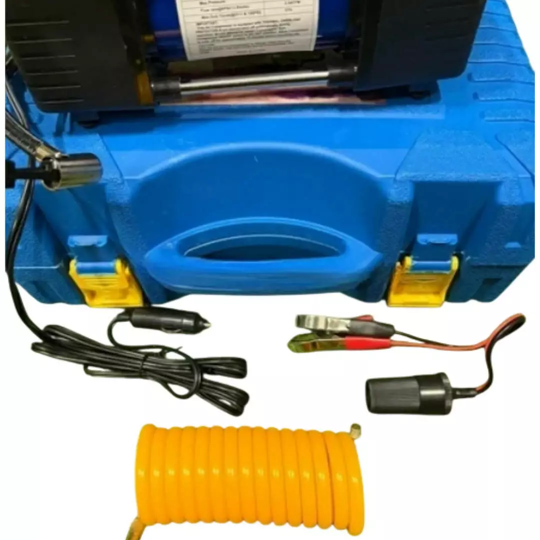Металевий корпус і посилена конструкція забезпечують стійкість до навантажень і тривалий термін експлуатації. Пристрій обладнаний точним манометром, який дає змогу контролювати тиск у шинах під час накачування. Завдяки компактним розмірам і зручній сумці для зберігання компресор легко перевозити в багажнику автомобіля. Це чудовий помічник для водіїв, мандрівників і власників автомобілів, які хочуть завжди бути впевнені в правильному тиску в шинах.