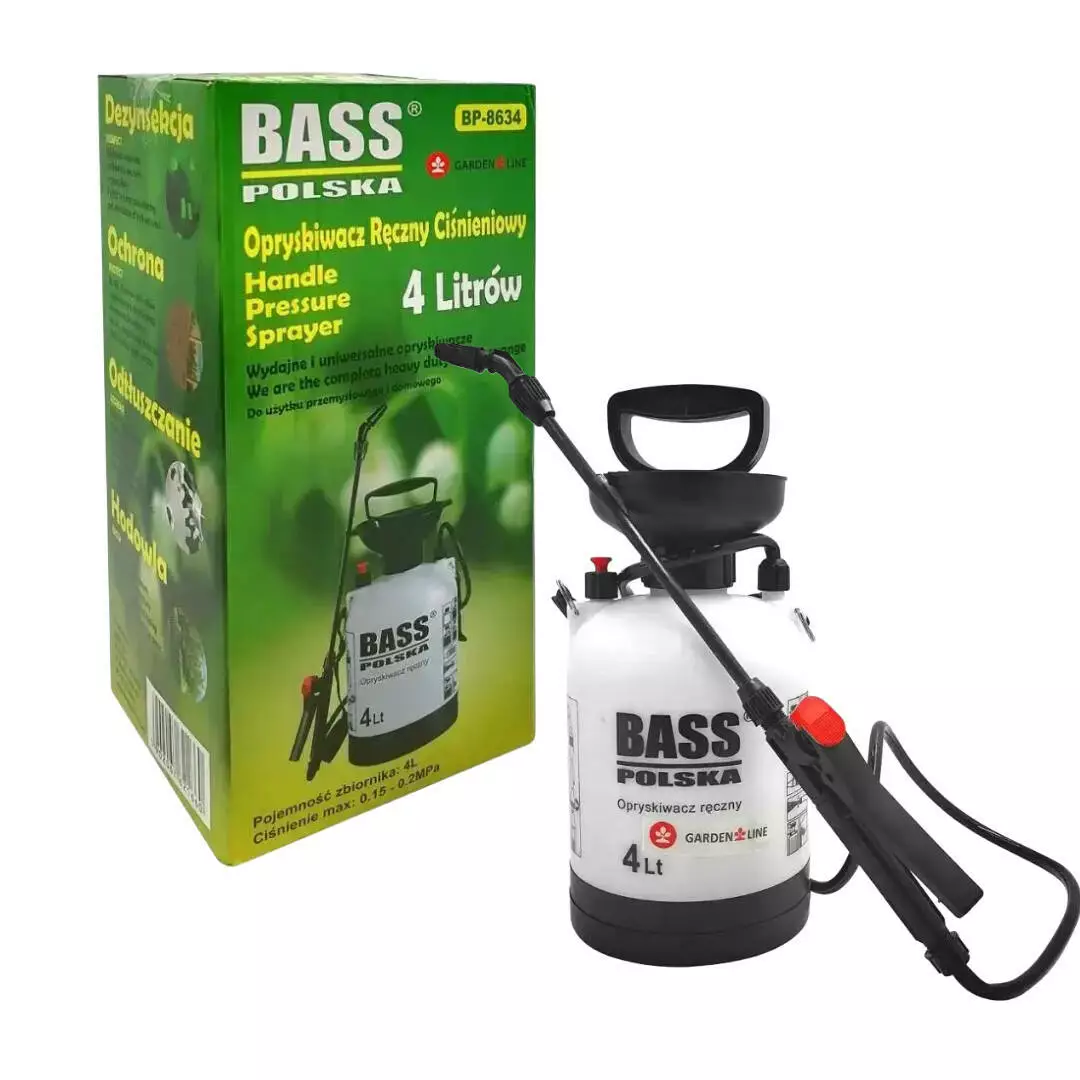 Ручний обприскувач Bass Polska 8634 — це зручне та практичне обладнання для догляду за садом, городом, квітниками та кімнатними рослинами. Завдяки об'єму бака 4 літри він ідеально підходить для невеликих ділянок, теплиць, балконів і квіткових клумб. Міцний корпус і ручний помповий механізм забезпечують стійкий тиск і рівномірне розпилення розчинів, водночас не вимагаючи батарей або електрики — просто накачайте тиск вручну за допомогою помпи та починайте роботу. Легкий і зручний дизайн робить модель зручною навіть у разі тривалого використання.