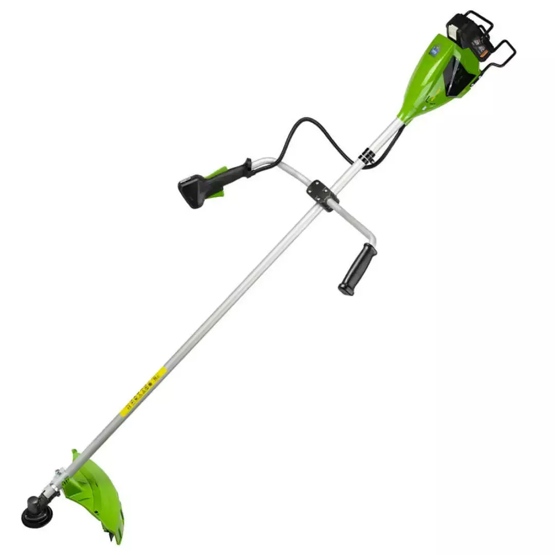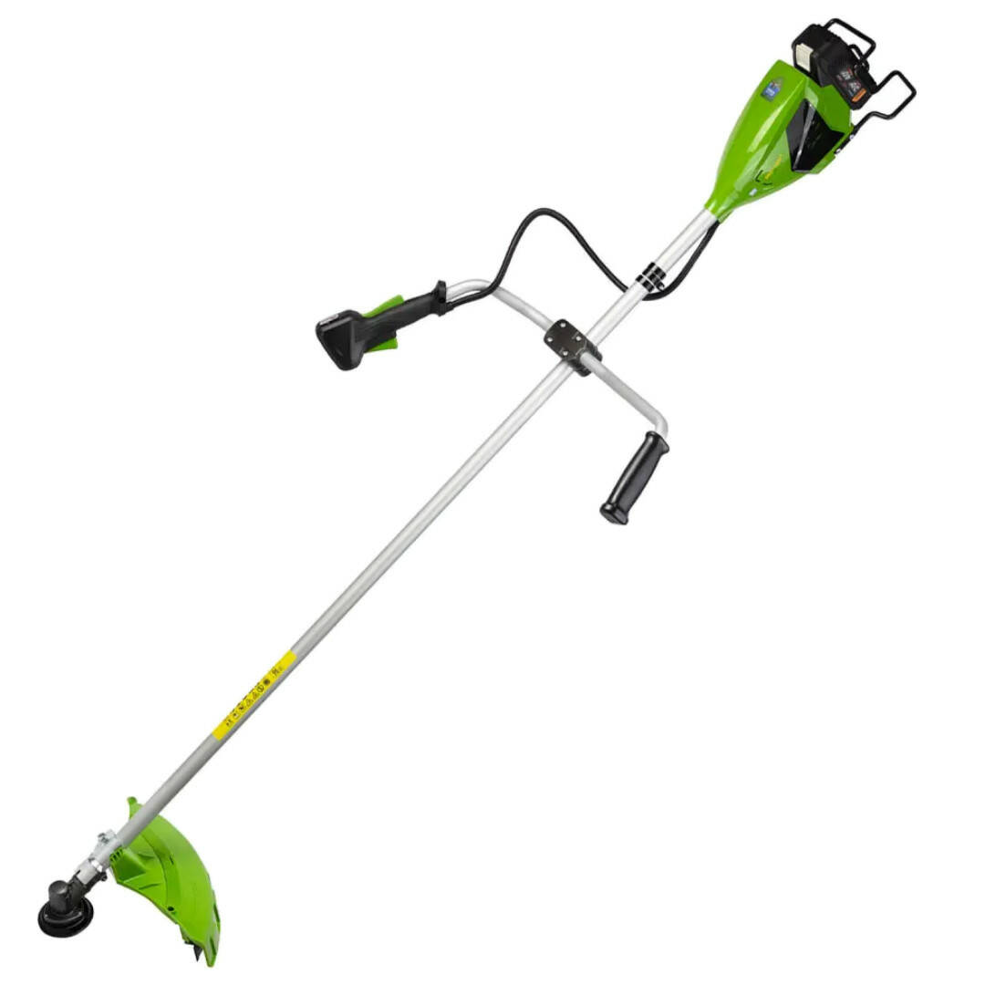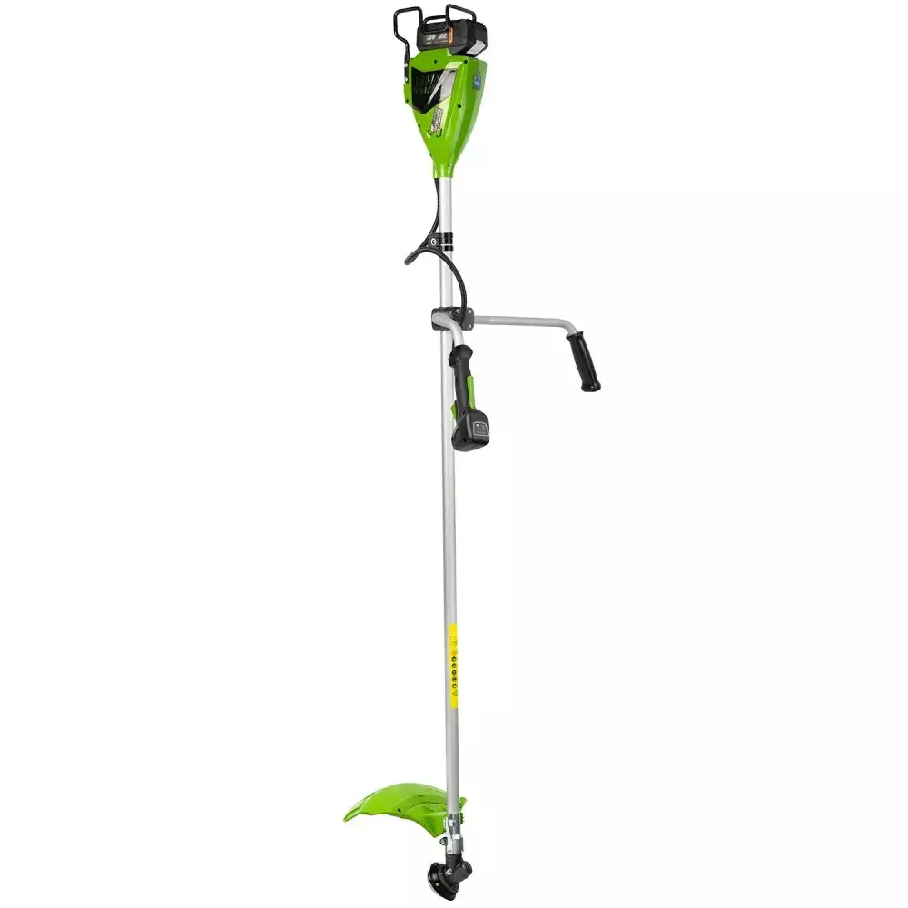 Основна перевага моделі — безщітковий двигун, який забезпечує стабільну потужність, економне енергоспоживання й тривалий термін експлуатації. Висока швидкість обертання до 5000 об/хв гарантує чистий і швидкий зріз. Широкий робочий захват 420 мм дає змогу неабияк прискорити процес косіння. Велосипедна ручка робить керування зручнішим і знижує навантаження на руки та спину.