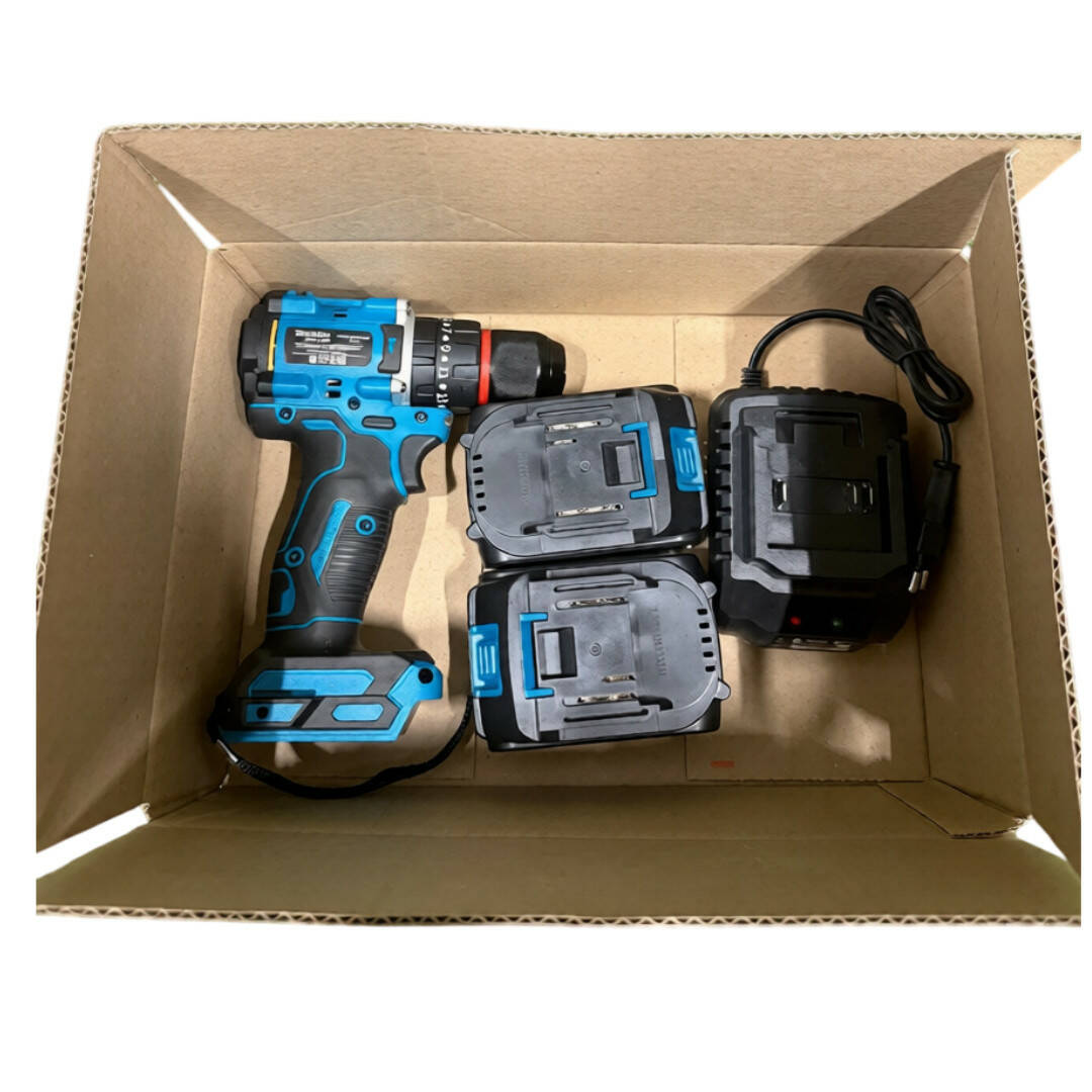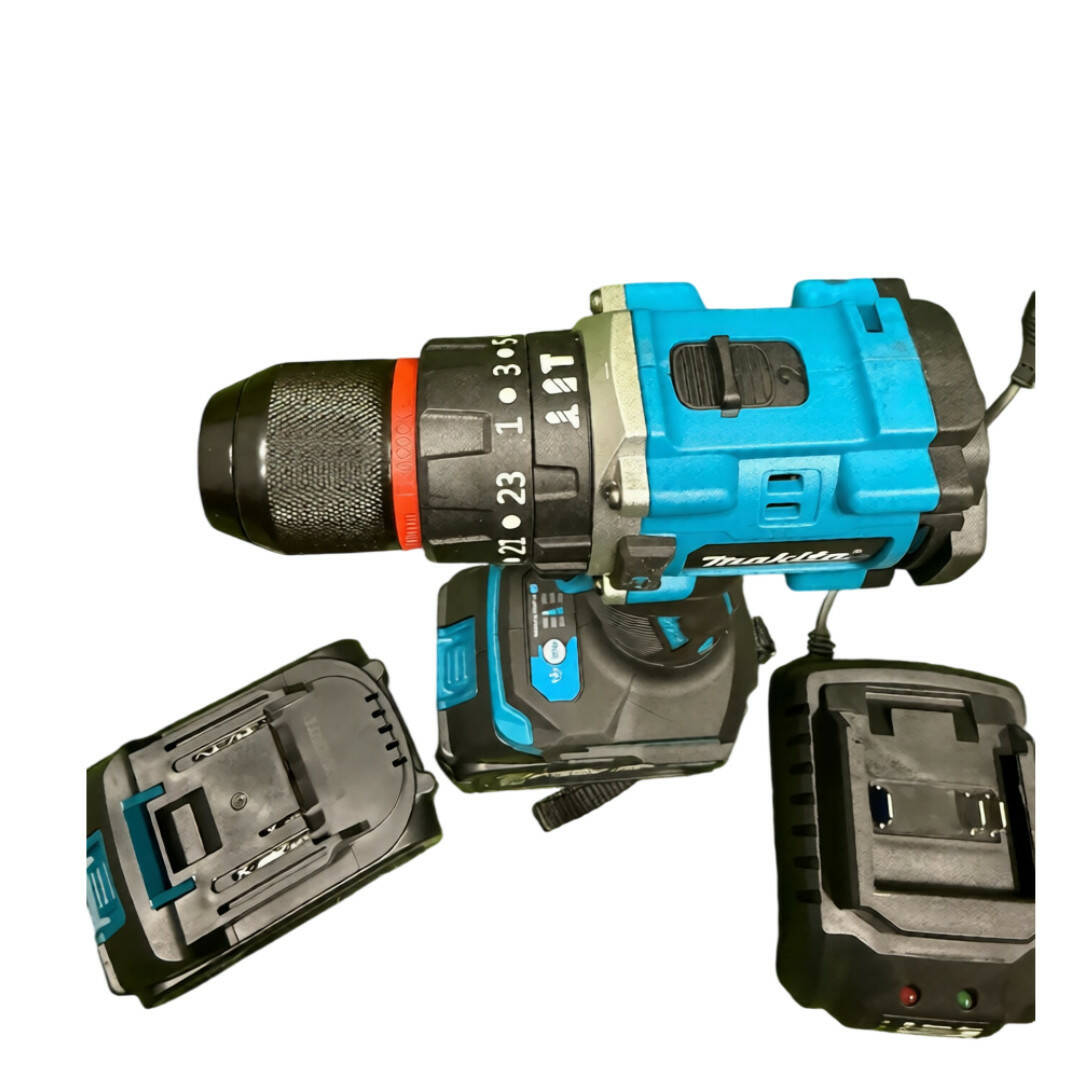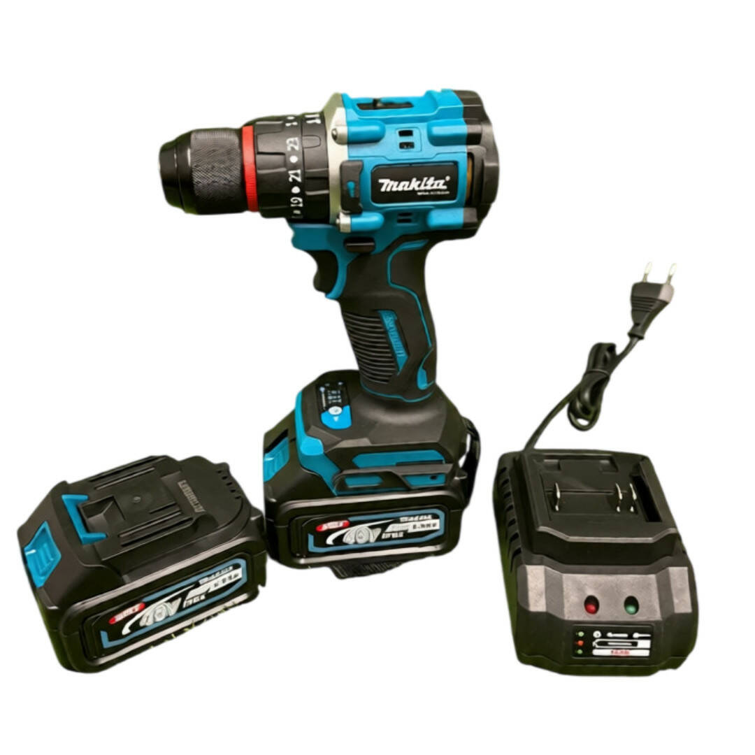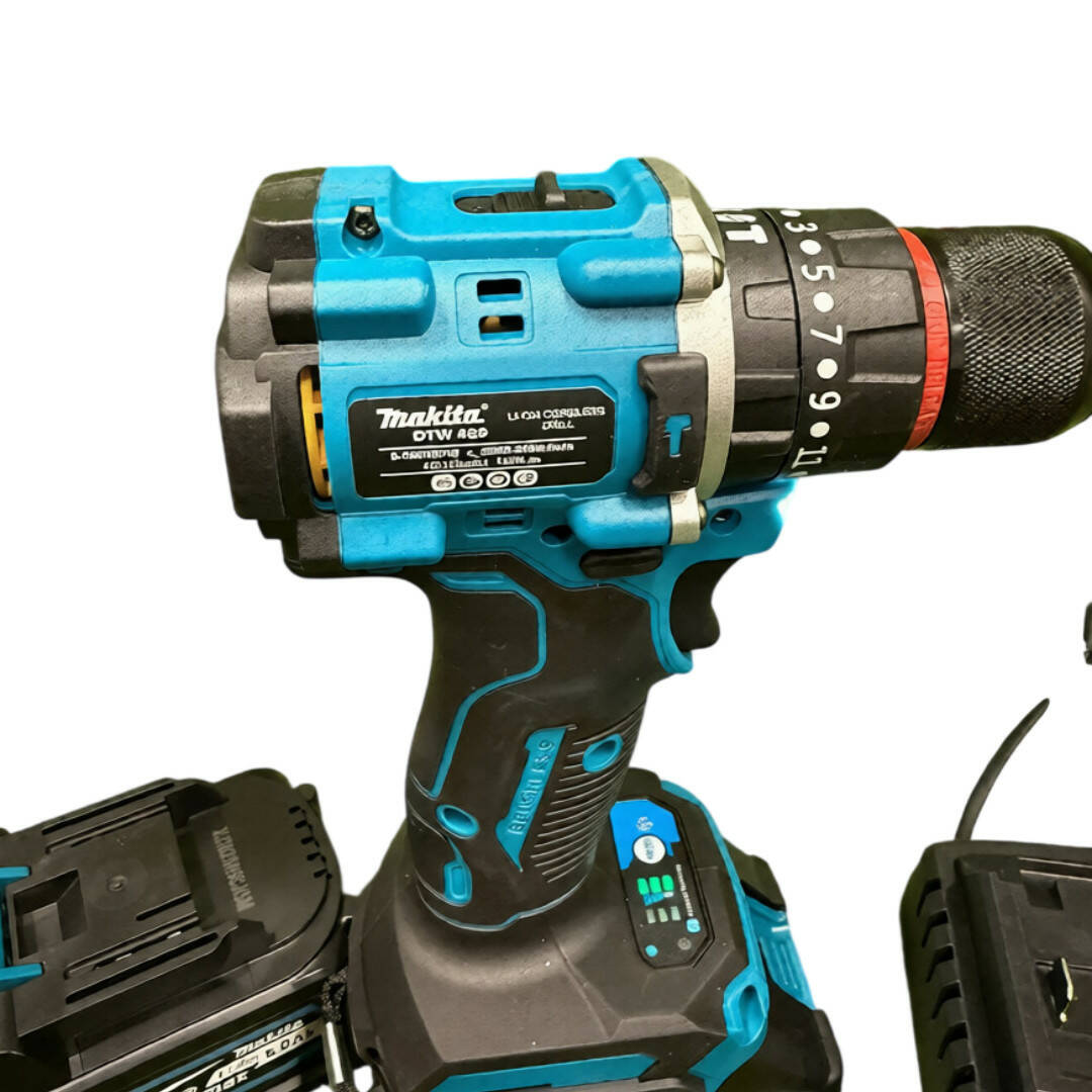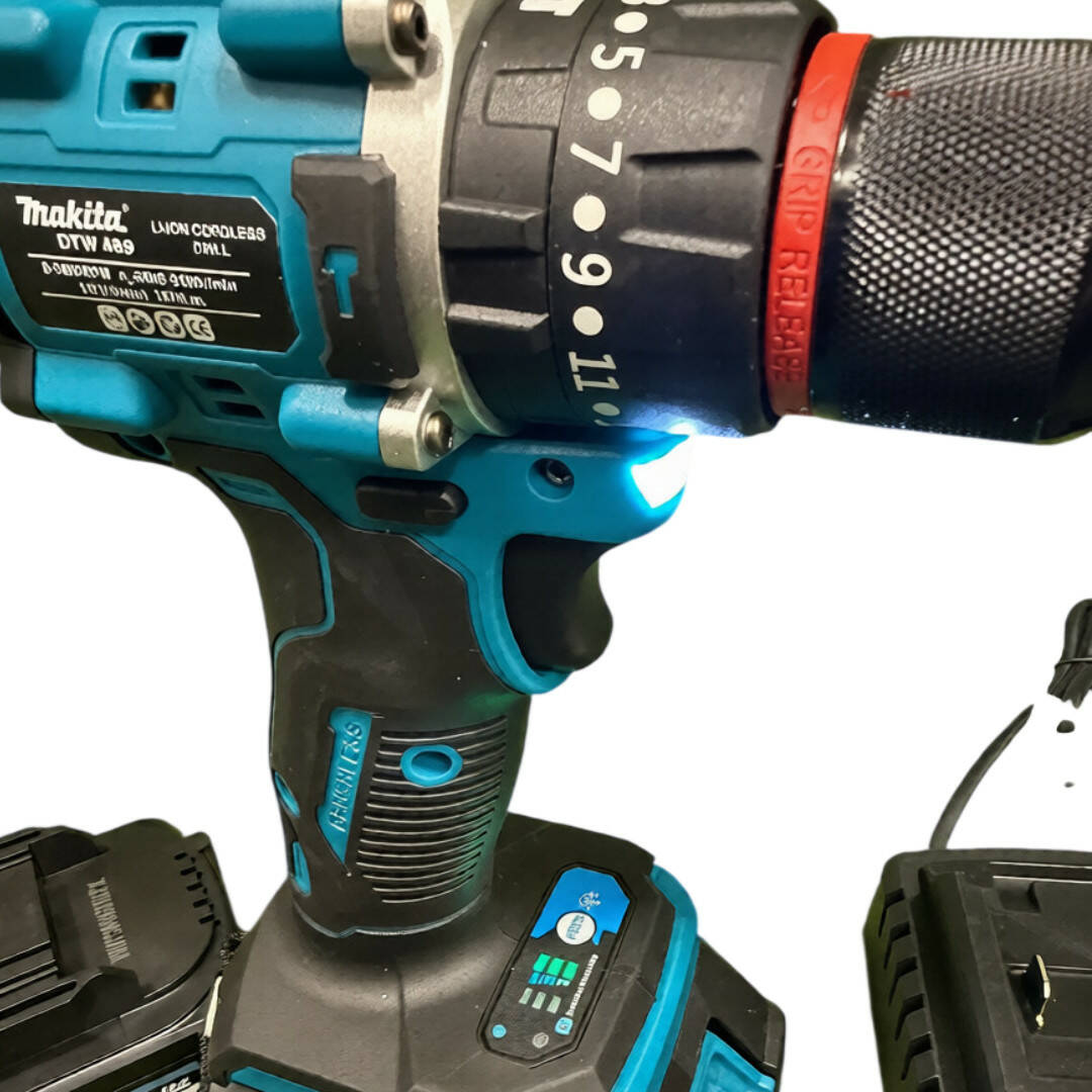 Інструмент має швидко затискний патрон 13 мм, зручну LED-підсвітку й ергономічний корпус із прогумованою ручкою. До комплекту входять два акумулятори, що дає змогу працювати без зупинок: один використовується, другий заряджається. Це чудовий вибір для ремонту, будівництва та професійного використання.