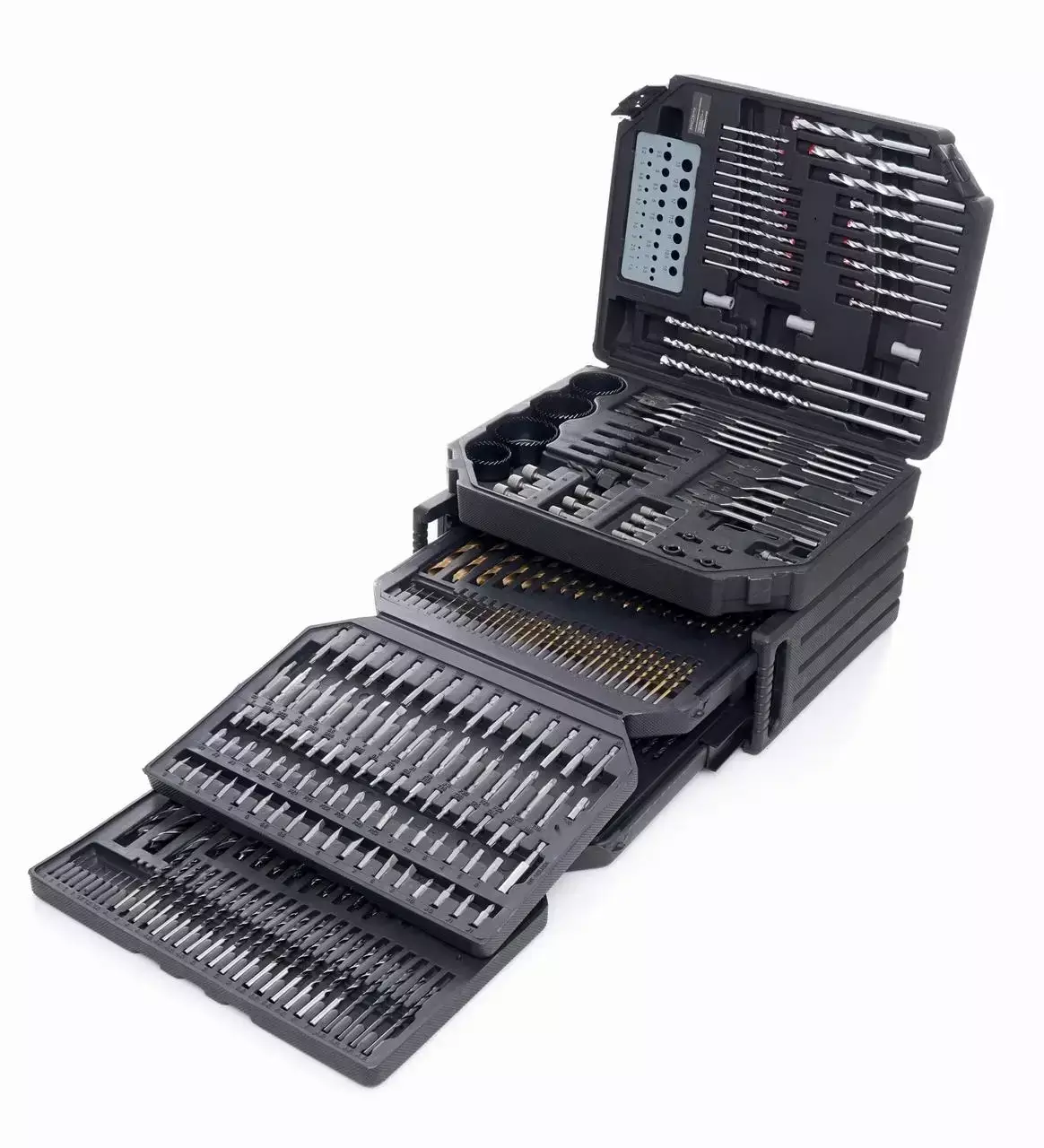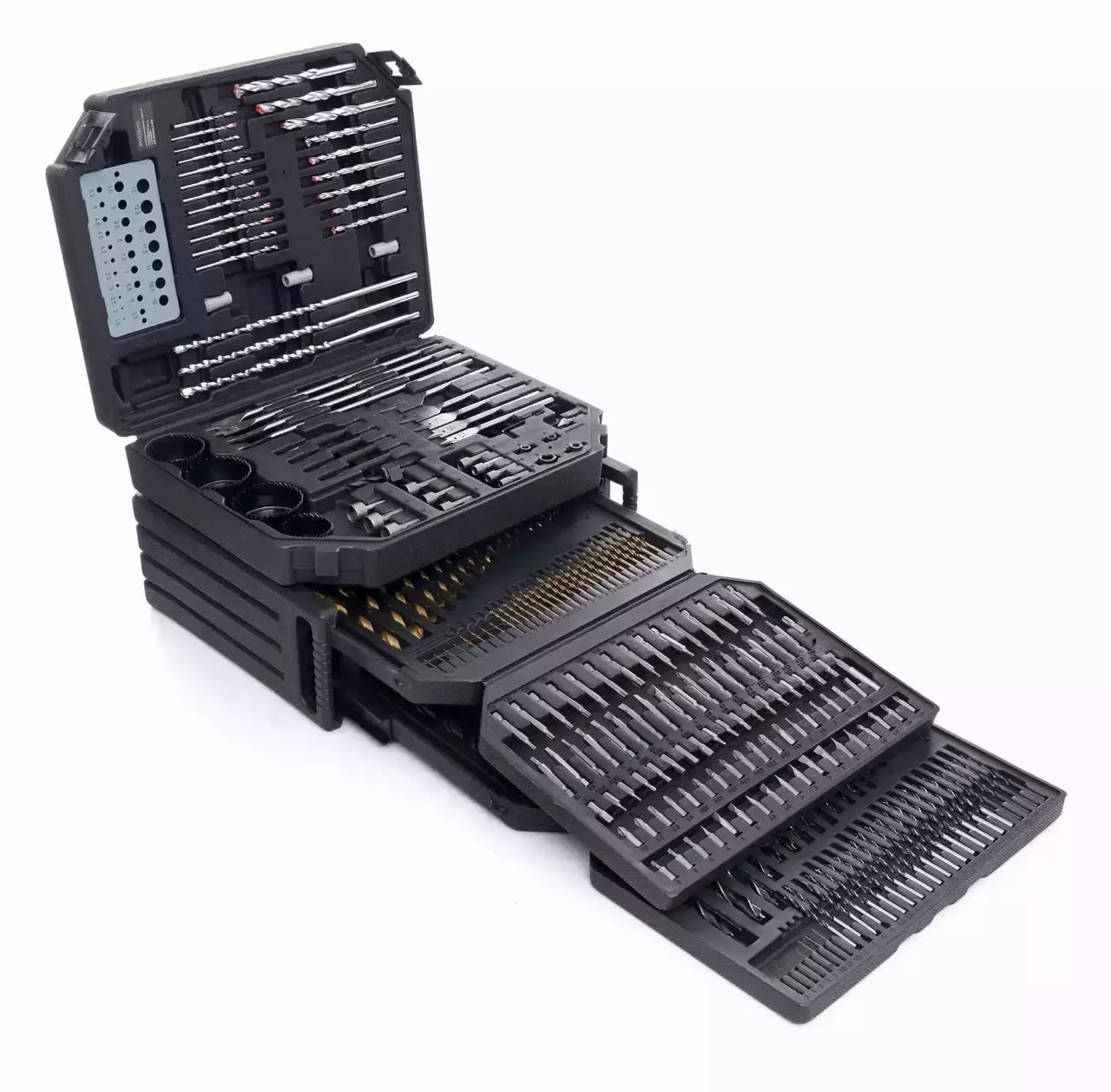 ✅ Максимальна універсальність: набір містить свердла, біти, коронки, долота й аксесуари для різних завдань.
