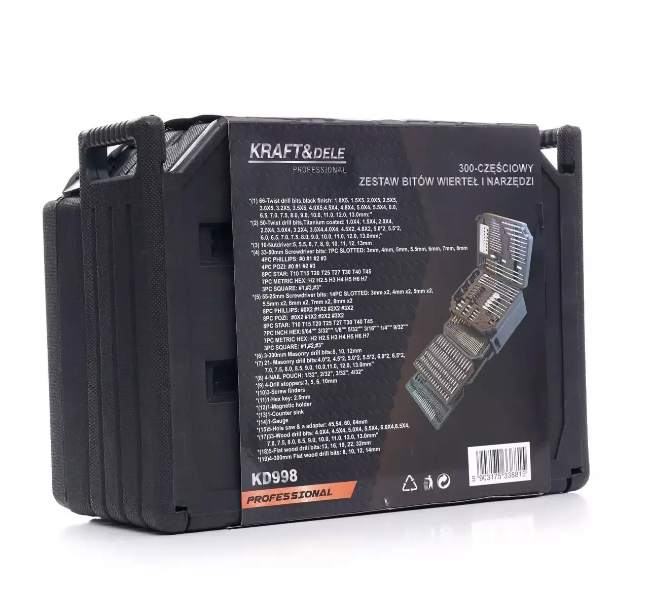 Універсальний набір свердел, коронок, доліт і бітів Kraft&Dele KD998 — 300шт. в міцному кейсі