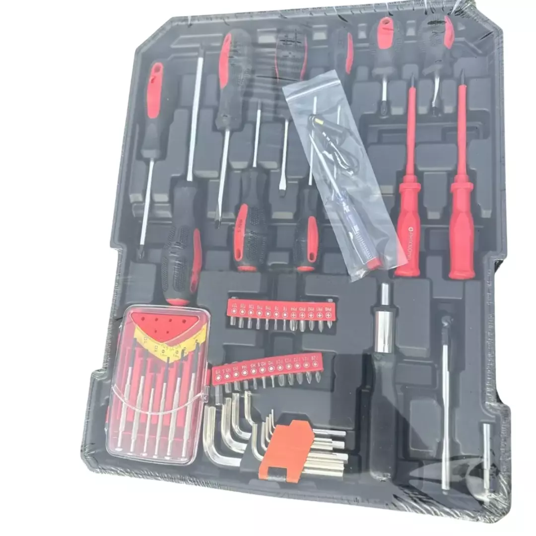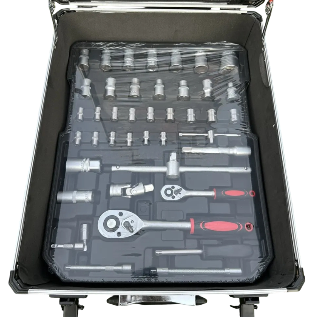 До набору входять головки різних форматів, тріскачки, воротки, ключі, викрутки, біти та допоміжні елементи, що робить його максимально універсальним Прогумовані ручки знижують навантаження на пензель і підвищують точність роботи. Набір призначений для регулярного використання в гаражі або майстерні. Компактні розміри кейса дають змогу зберігати його навіть в обмеженому просторі. Висока якість оброблення металу забезпечує довгий термін експлуатації. Ідеальний вибір для комплексного ремонту та обслуговування техніки. Чудовий варіант як для особистого користування, так і для професійної діяльності.